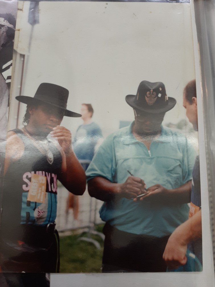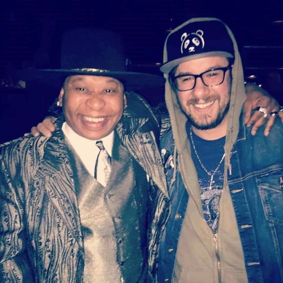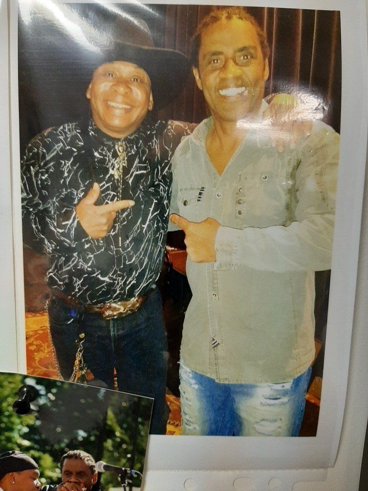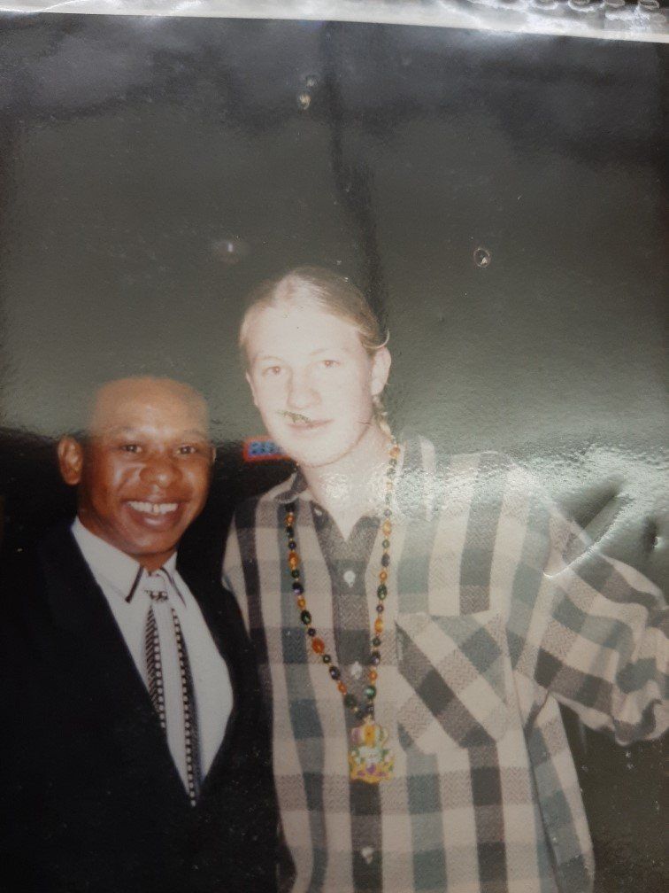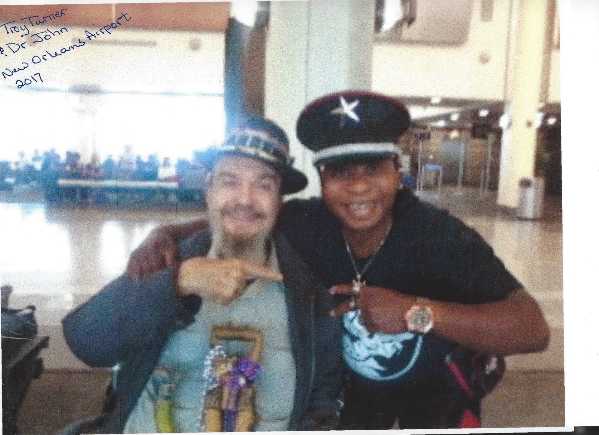 Troy and Dr John in New Orlean's airport, 2017. 30 years after shooting Popeye's chicken commercial together.