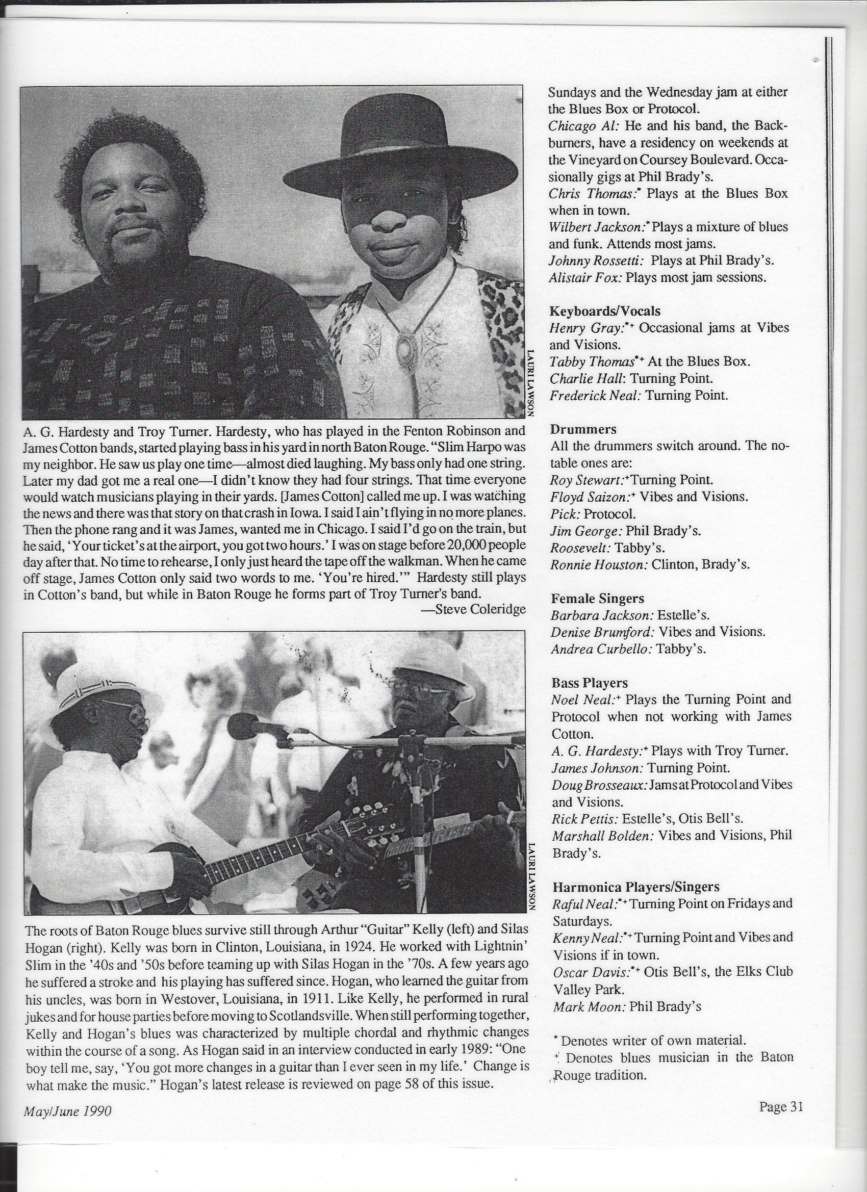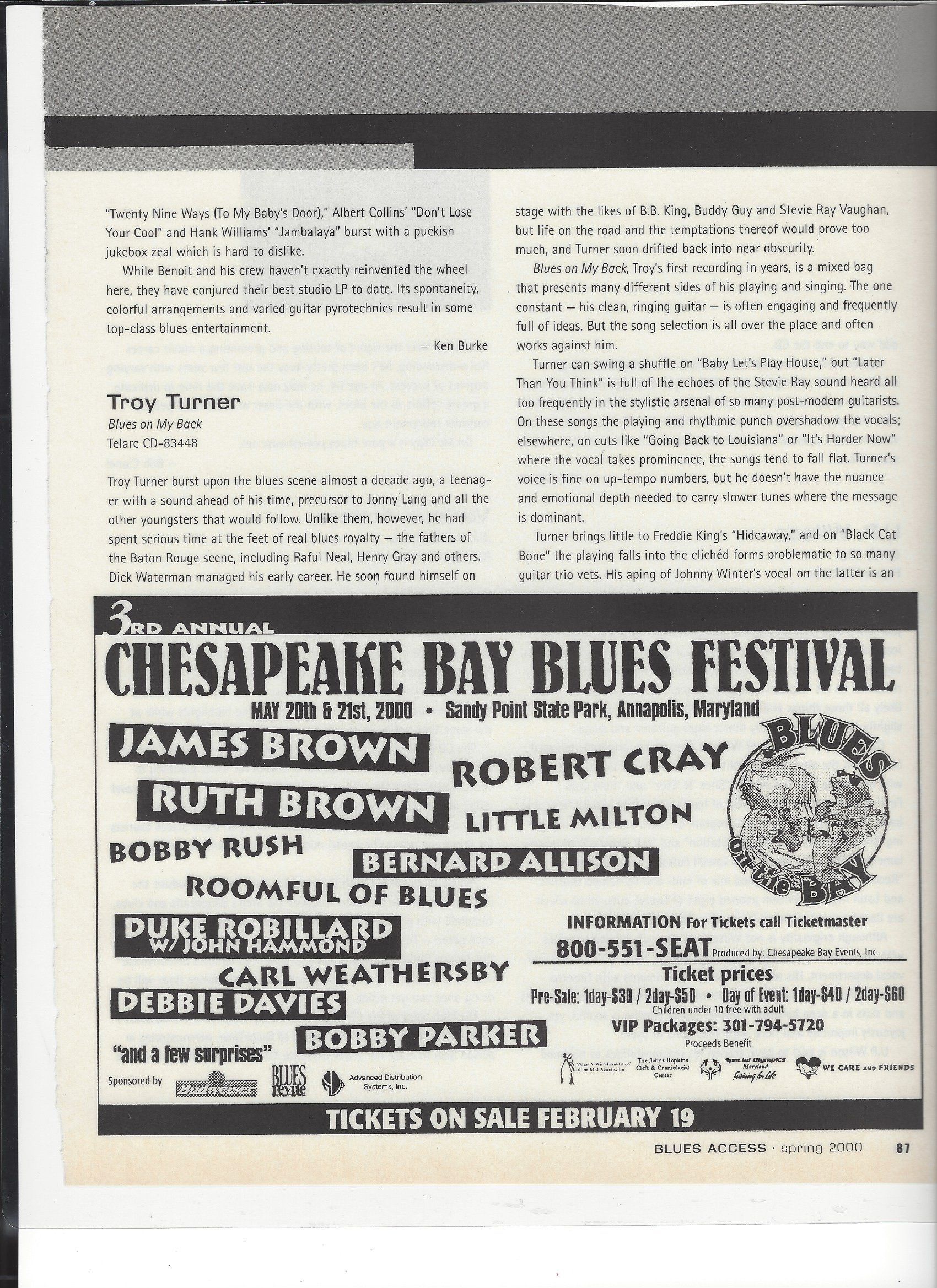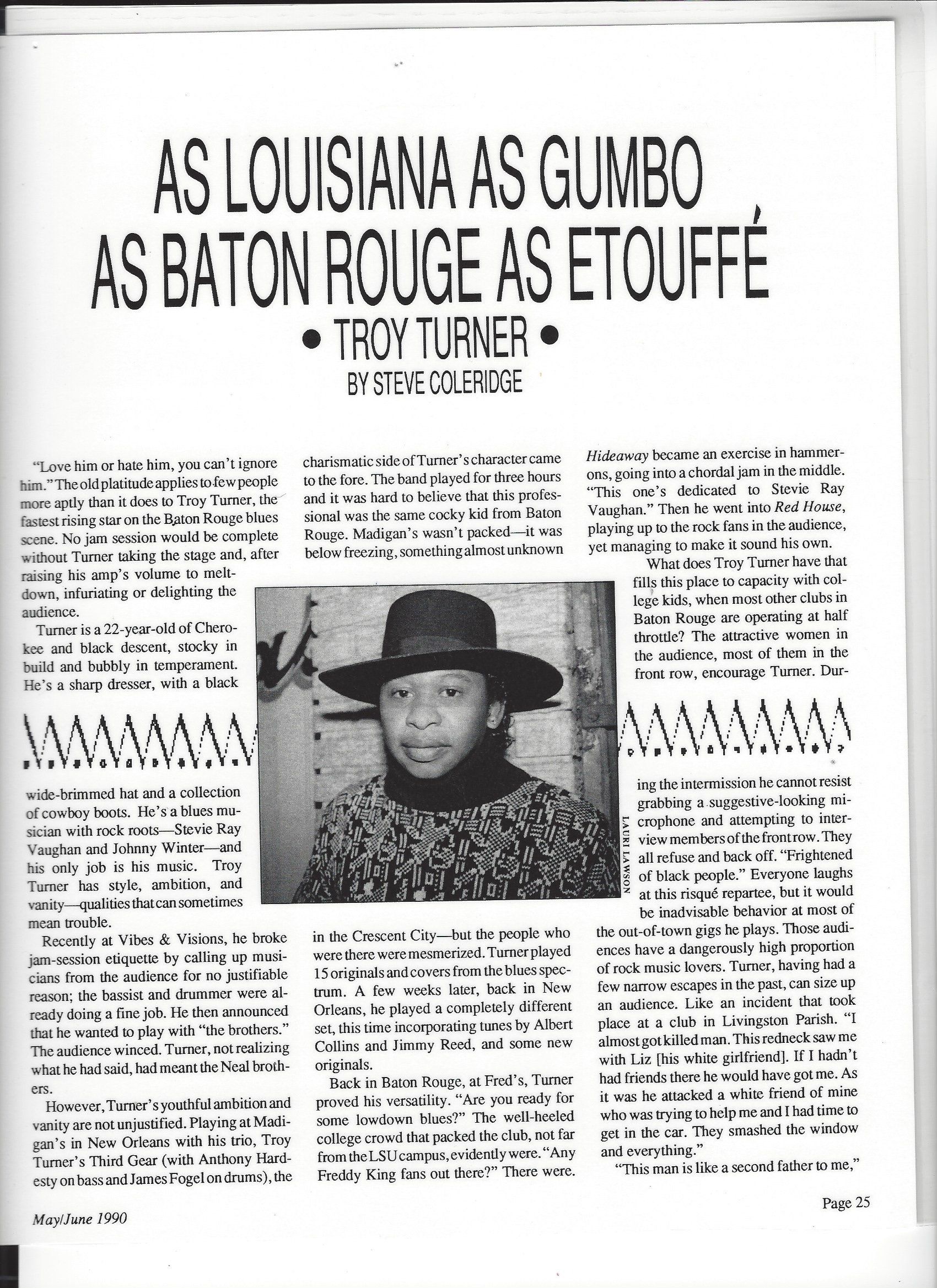 1987. Troy opened for Clarence Gatemouth Brown at The Barge in Mandeville, Louisiana
